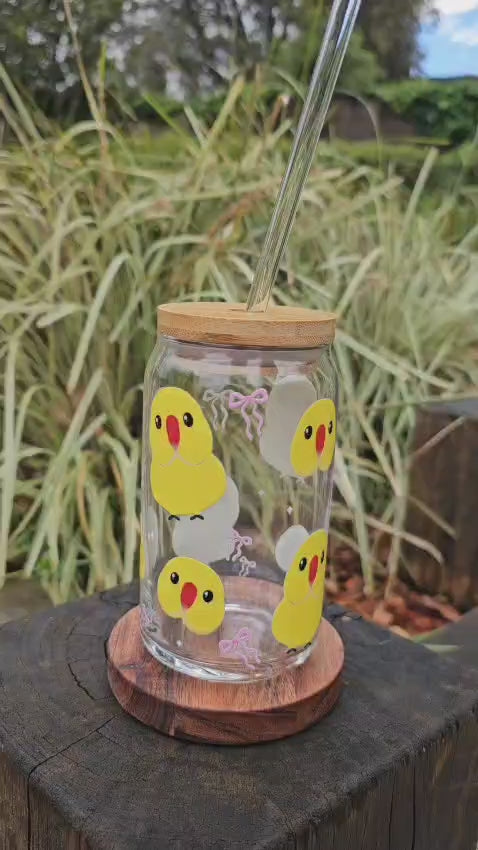 • Includes 1 glass tumbler featuring your custom UV-DTF bird design